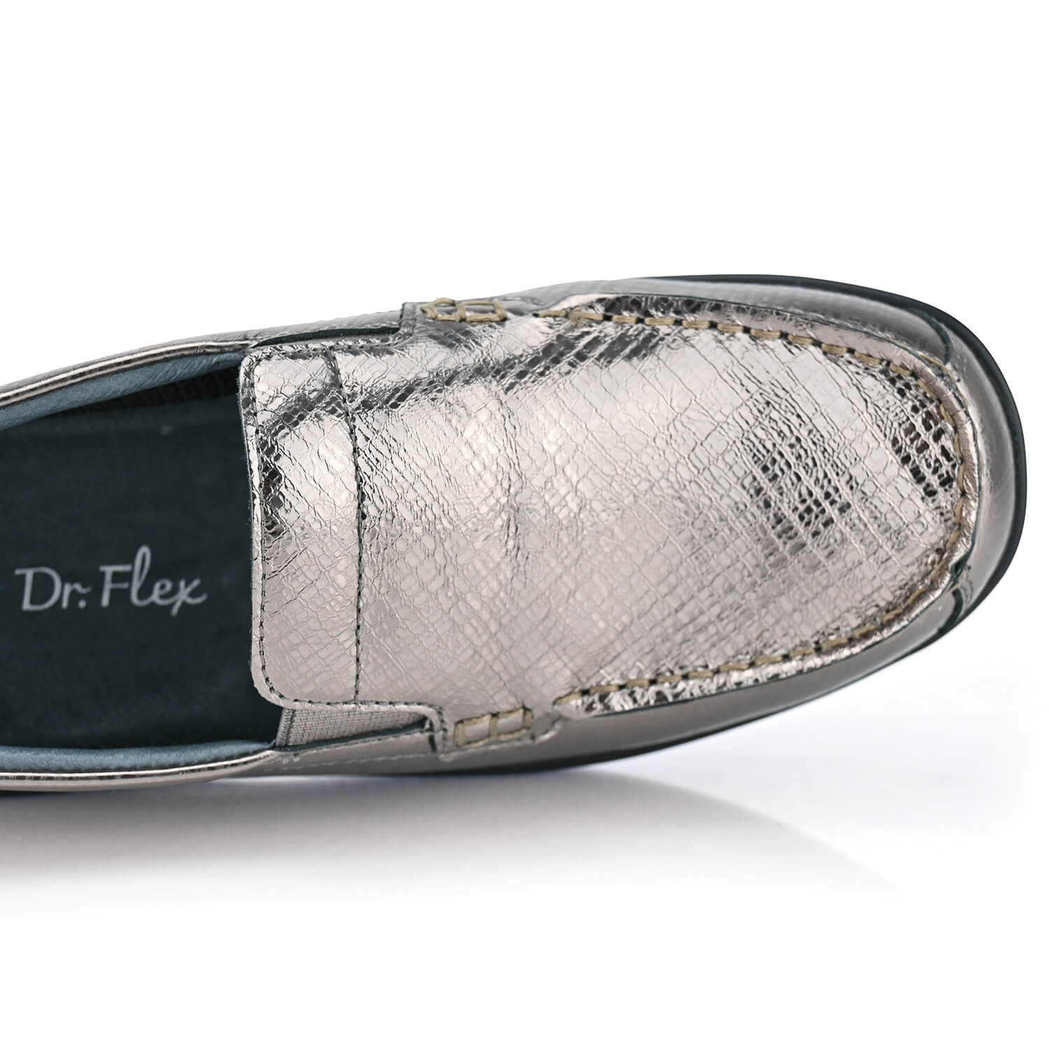 נעלי DR. FLEX לנשים שמעריכות עיצוב אלגנטי לצד נוחות אמיתית. עשויות עור נפה יוקרתי בטקסטורה מטאלית מרהיבה, עם רוחב רחב ורפידת נוחות רכה שמעניקה תחושת קלילות ותמיכה. מושלמות ליום יום, עם מראה מתוחכם שמרגיש פשוט נכון בכל צעד.